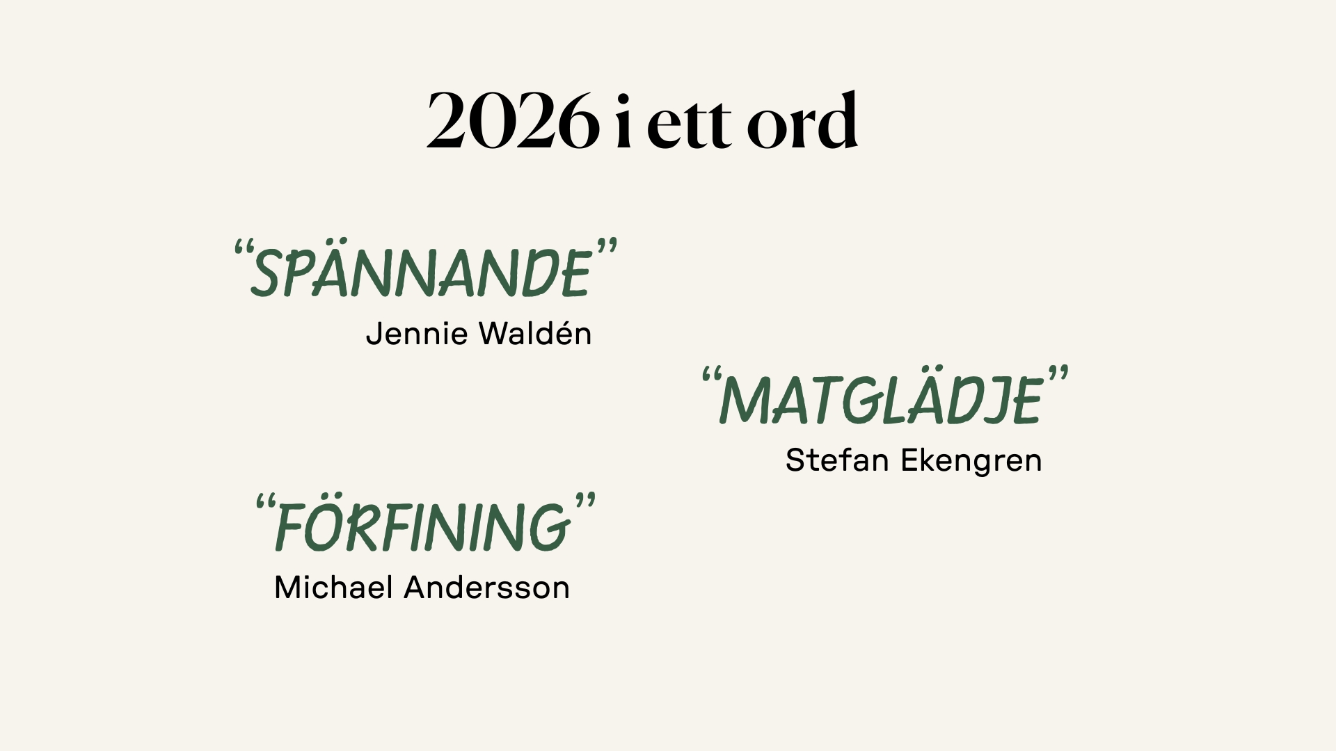 Samstämmigheten är tydlig: 2026 blir både spännande och krävande. Jennie Walldén beskriver året som ”intressant, spännande och utmanande”, medan Michael Andersson ser en fortsatt uppdelning mellan genuin kvalitet och det som bara är ”good enough”. För Stefan Ekengren innebär utvecklingen att konkurrensen hårdnar: fler riktigt bra krogar gör att de som vill vara lönsamma måste hålla nivån – och fortsätta utvecklas.