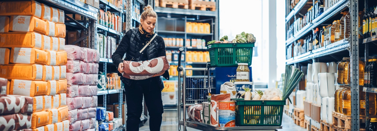 För att kunna handla i butiken behöver du ett kundkort. Det kan du ansöka om via hemsidan, eller direkt i butiken om du behöver åka och handla redan idag. På plats i butiken kan du även ansöka om att få betalning via faktura.