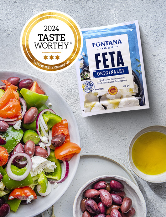 När Fontanas ursprungsskyddade fetaost producerats i grekiska Elassona av deras grekiska leverantörer, har de hittills bara gjort jämna, fina block. Men den lätt syrliga osten av mjölk från fritt strövande får och getter är naturligtvis lika god i ojämna bitar. Nu har de börjat samla spillbitarna av kvalitetsosten och förpackat dem i enkilospåsar. Ska du ändå smula feta, eller bryta den i mindre bitar till en gratäng eller gryta, kan du numera välja Fontana Originalet Spillbitar. Maten får samma goda smak, men du sparar pengar och tar tillvara på ost som annars skulle ha slängts.