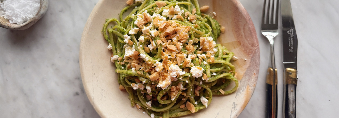 Pasta verde med fetaost