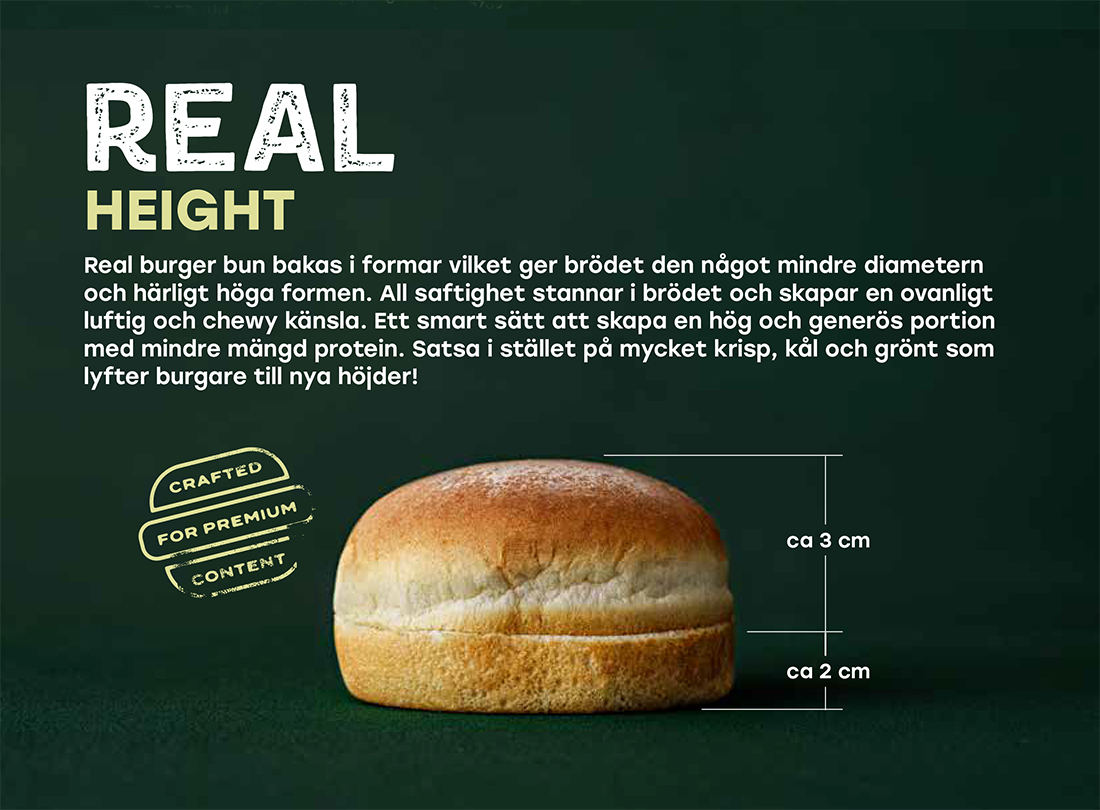 Real burger bun är en nyhet som tar din burgare till nya höjder! Ovanligt högt, ovanligt gott och med en härlig chewy känsla. Perfekt för både smashed burgers och växtbaserade proteiner – den lyfter alla smaker. Bakad med endast växtbaserade ingredienser i Örebro. En real deal du bara måste prova! -