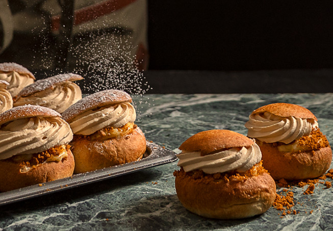 En modern twist på den älskade semlan: här möts len, vispad grädde och silkig vaniljkräm gjord på äkta vaniljstång med den kryddigt karamelliga smaken från Biscoff. Fyll den luftiga slätbullen med krämig Biscoff spread, toppa med fluffig grädde och avsluta med knaprigt Biscoff crumble för perfekt texturkontrast.