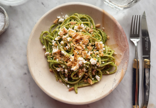 En enkel och smakrik grön rätt som snabbt blir en favorit på menyn. Med få, prisvärda råvaror och mycket umami får du en smakfull pasta – toppa med en riktigt bra svensk ost. Små detaljer gör stor skillnad.