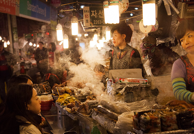 ”Det serveras massor av små sidorätter, banchan, som ska ge en känsla av rikedom och det läggs stor vikt vid att det ska vara festligt. Man äter ofta ute på små syltor eftersom det är jättebilligt och för att man många gånger inte hinner laga mat efter jobbet. Koreaner gillar att umgås på ett enkelt och uppsluppet sätt. Under helgerna samlas familjen och äter tillsammans. Man grillar gärna tunt skivat kött, fisk, fågel, skaldjur och grönsaker. Det man ofta pratar om är att maten har helande och lugnande egenskaper. Stress kan man bota med varm buljongsoppa, trötthet med en stark chiligryta. Det finns även mat som anses öka den sexuella lusten och det är alltid något av det man äter som är bra för kroppen på det ena eller andra sättet. Desserter är inte vanliga, men om det serveras är det oftast i form av färsk frukt", säger Jens.