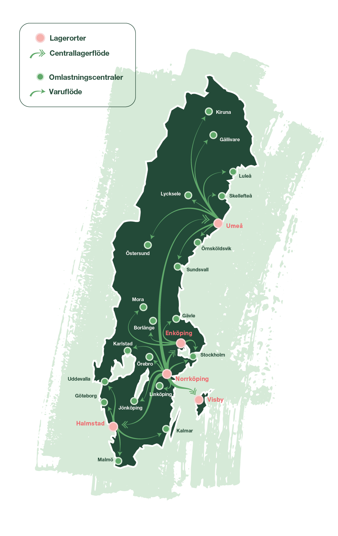 Martin & Servera Logistik är hel eller delvis logistikpartner till våra systerbolag Martin & Servera Restauranghandel och Grönsakshallen Sorunda. Utöver våra koncernbolag hanterar vi logistikuppdrag till kunder och har möjlighet att erbjuda andra logistiktjänster.