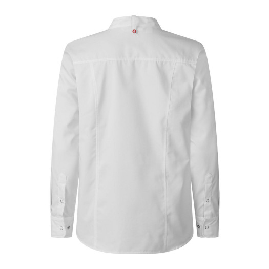 Dressad hybridskjorta som passar både i köket och serveringen. Pennficka på ärmen. Förklädeshank i nacken. Unisex-passform med rundad nederkant och längre baktill.Läs mer Visa mindre
