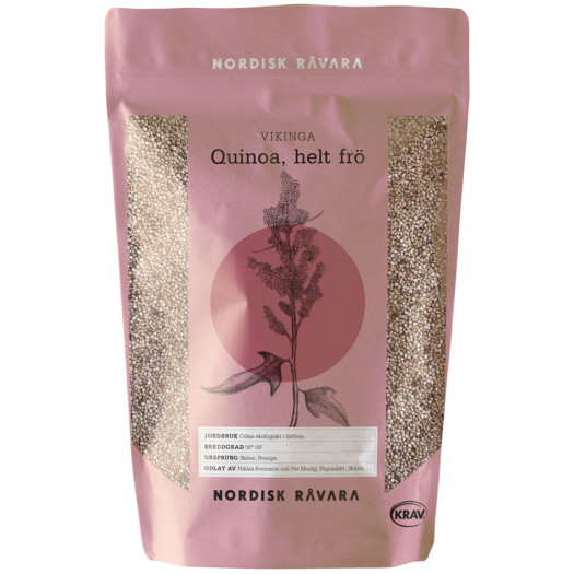 På quinoa med hela frön sitter skalet kvar och har inte borstats eller polerats bort som på annan quinoa. Det ger fina fasta runda gryn med matighet och mer fibrer. Vikinga har en rund spannmålssötma med en ton av nötter och solrosfrön. Passar utmärkt till biffar och bollar och som tillbehör istället för ris eller pasta. Lämpar sig bra som grötgryn eller i sallader och är möjlig som proteinkälla helt eller delvis i vegetariska och veganska rätter. Produkten ska tillagas innan förtäring.Läs mer Visa mindre
