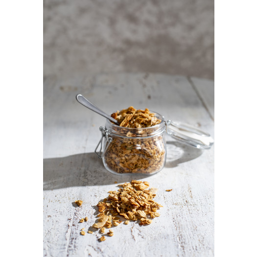 Lyxig och krispig glutenfri granola, rostad för hand med naturliga råvaror och helt utan tillsatser. Sötad med agave för en balanserad smak med fokus på näring och kvalitéLäs mer Visa mindre