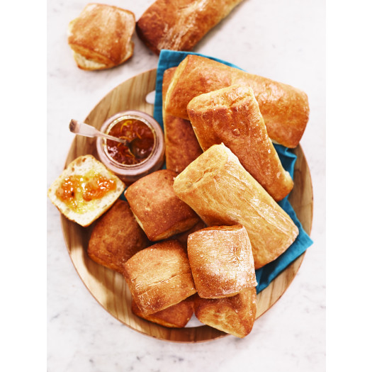 Servera en bit av Italien med ljus Ciabatta. Den långa jäsningsprocessen och surdegen ger Ciabattan en distinkt smak och en krispig yta. Brödet är bakat på svenskt mjöl enligt italienska traditioner i Södermanland. Varje ciabatta väger 110 gram.Läs mer Visa mindre